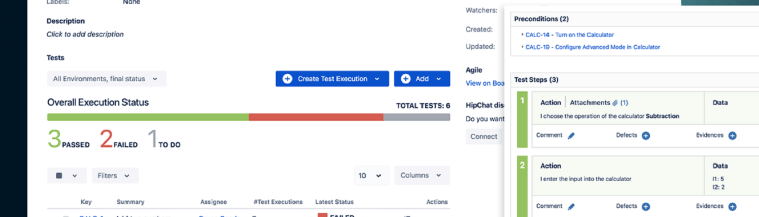 Xray ondersteunt handmatige en geautomatiseerde testcase in Jira waarbij stappen, data, precondities, verwacht resultaat en meer, toegevoegd kunnen worden door middel van handmatige invoer of via het importeren van bestaande testcases uit csv, json of andere bestanden. Tevens biedt Xray ondersteuning voor BDD met gebruik van Gherkin scenario’s. Hierdoor wordt de drempel tussen business en IT verlaagd, doorlooptijd korter en de herkenbaarheid bij de business groter. Geautomatiseerde testcases kunnen ook vanuit andere frameworks geïmporteerd worden zodat je testcases en resultaten van bijvoorbeeld Selenium, TestNG, JUnit, Robot Framework etc. ook zichtbaar worden. In combinatie met continue integratie, met bijvoorbeeld Bamboo of Jenkins, biedt dit een mooie meerwaarde voor het gebruik in Jira.